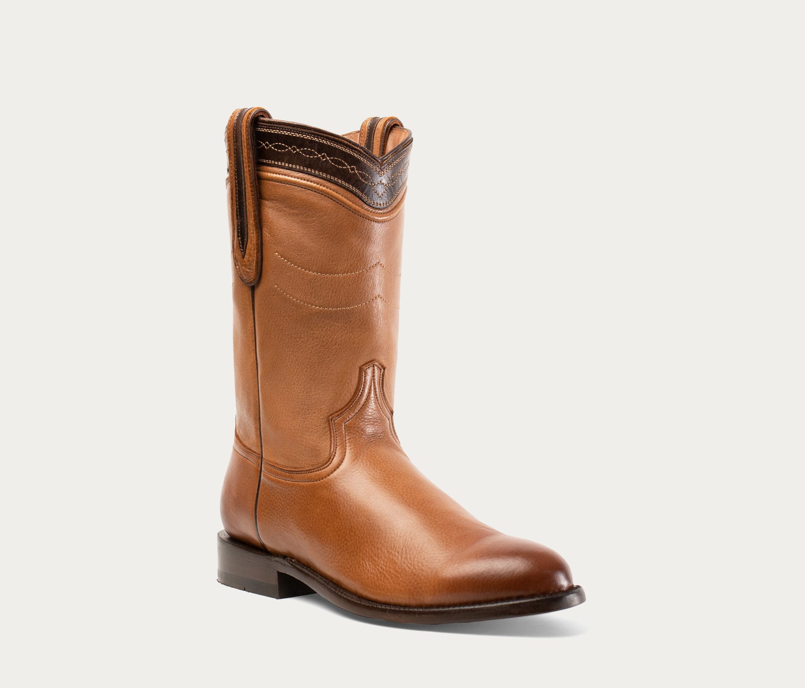 Full grain cowhide sets the bar for all premium cowboy boots. The natural fibers and heavier weight of the skin make the boots perform like iron in the toughest