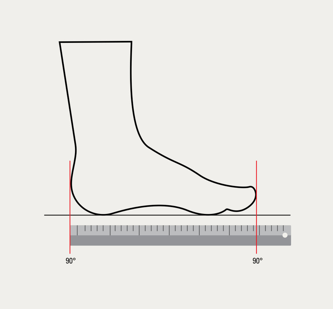 - Use a pen to mark the outermost edge of the heel, and the outermost edge of the toe at a straight up and down 90° angle.