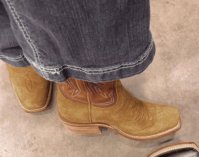 True roughout leather boots, much like a cowboy’s good roughout saddle, are simply utilizing the reverse side of a natural, full grain leather. It offers all the durability of a full grain leather, but produces a much punchier, and old school cowboy look. The leather will attract dirt and dust and naturally burnish from wear, making each pair of boots unique to its owner in time.